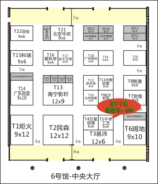 千帆展位號:6號廳T5   千帆展位號如圖所示: